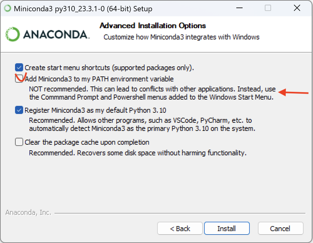 - Register Miniconda as the system Python