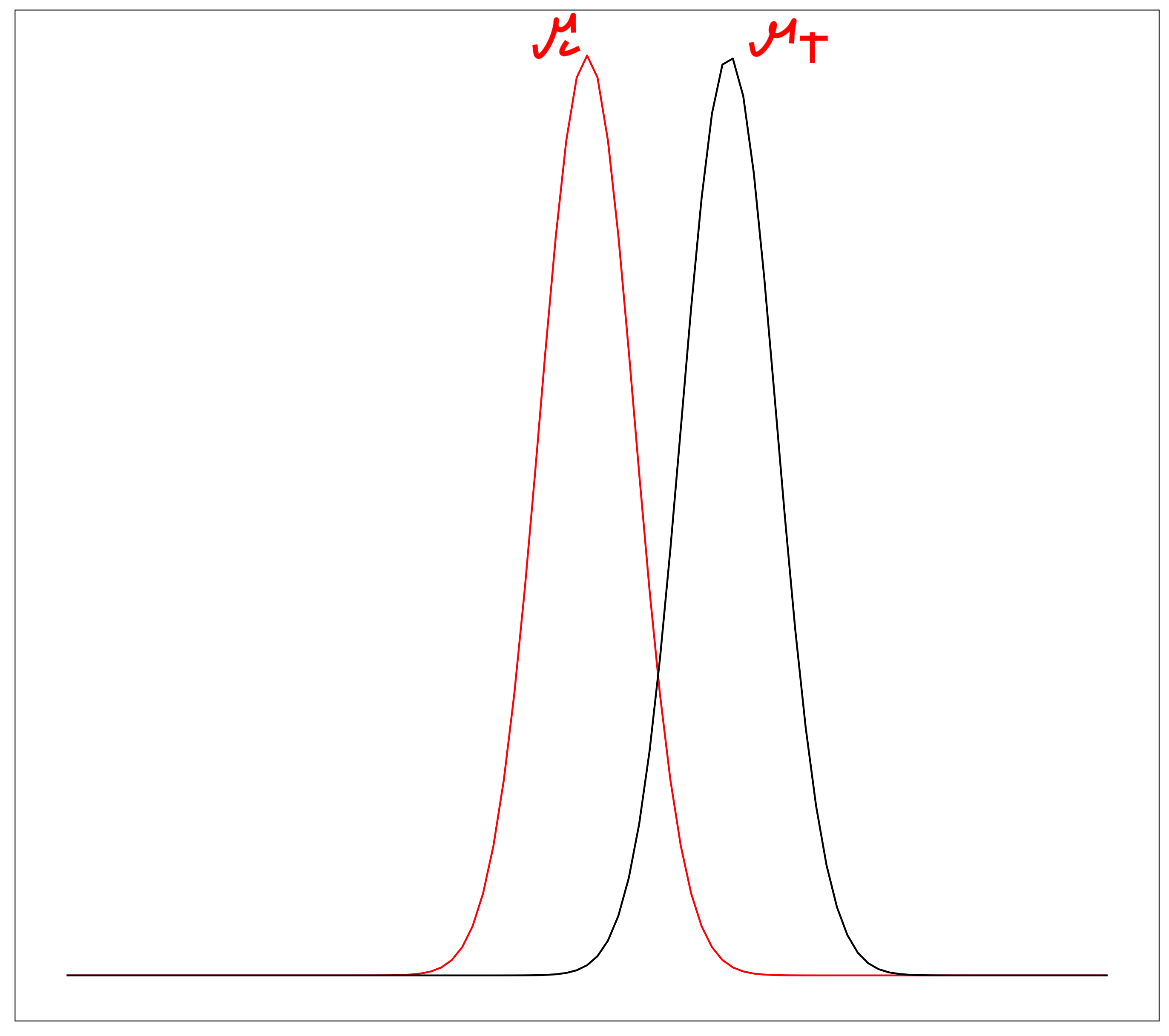 Sampling distribution of the means for two groups (control and treatment):
