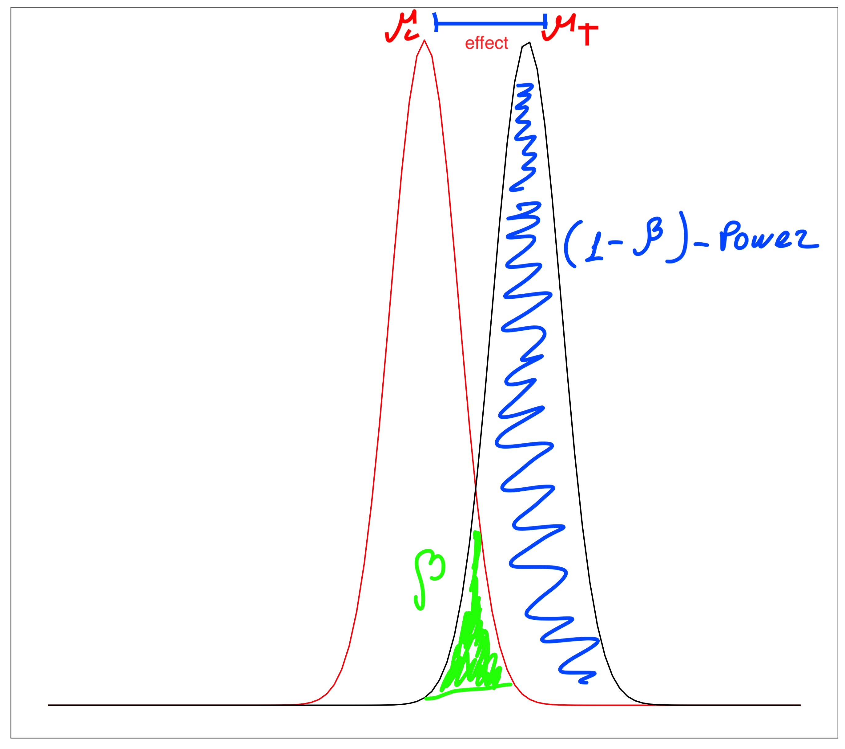 The rule of thumb for \(1-\beta\) is 0.8, which means that we have 80% chance of rejecting the \(H_0\) when it is False.