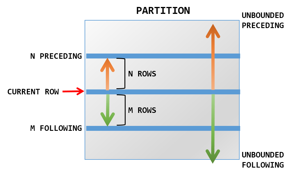 PARTITION BY defines who belongs togetherORDER BY defines sequenceThe frame defines how far backward and forward the window can see.
