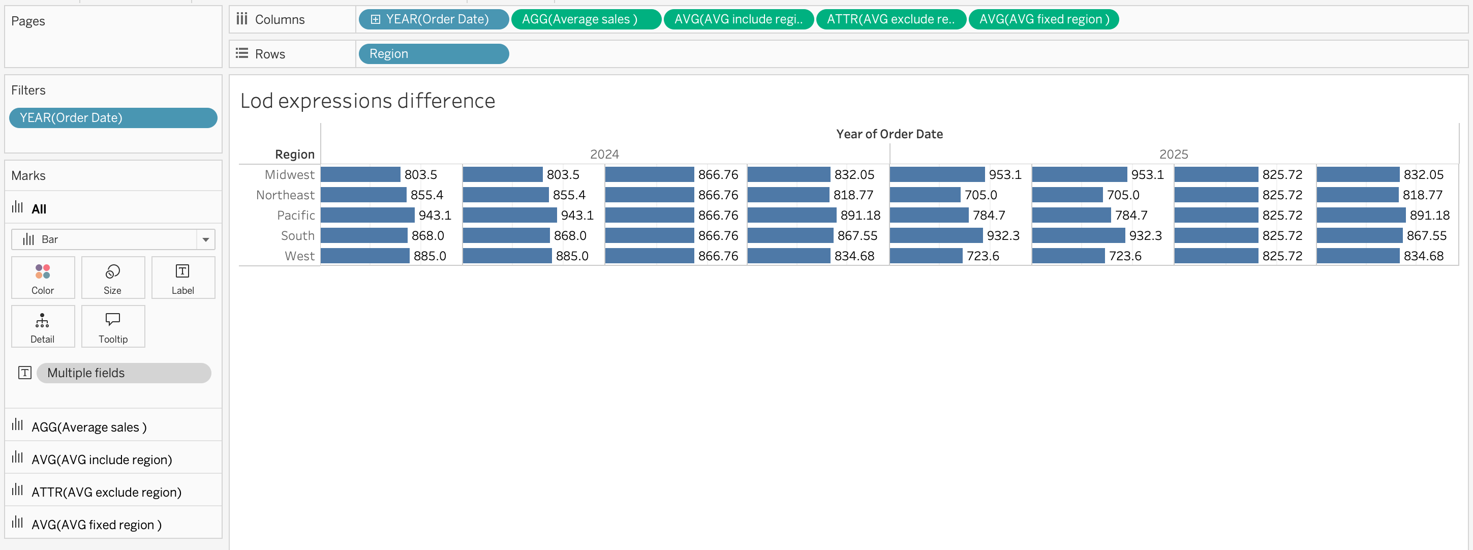 { FIXED [Customer ID] : SUM([Sales]) }If you add a regular dimension filter on [Region], the FIXED result does not automatically change.