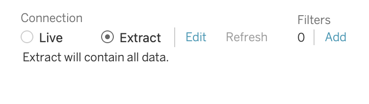 A live connection queries the underlying database every time the user interacts with the dashboard.
