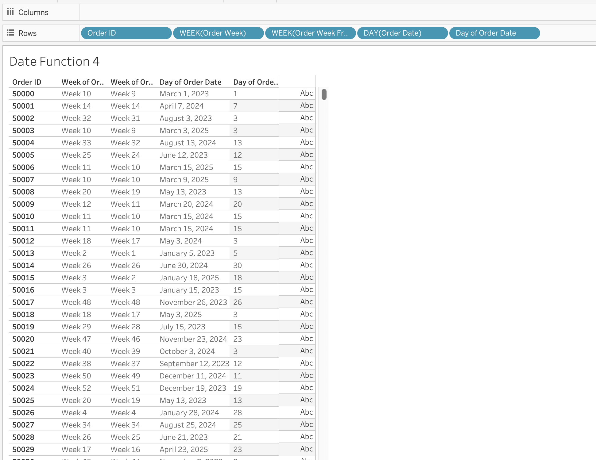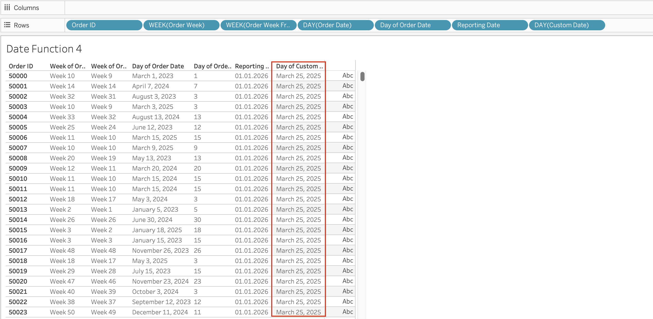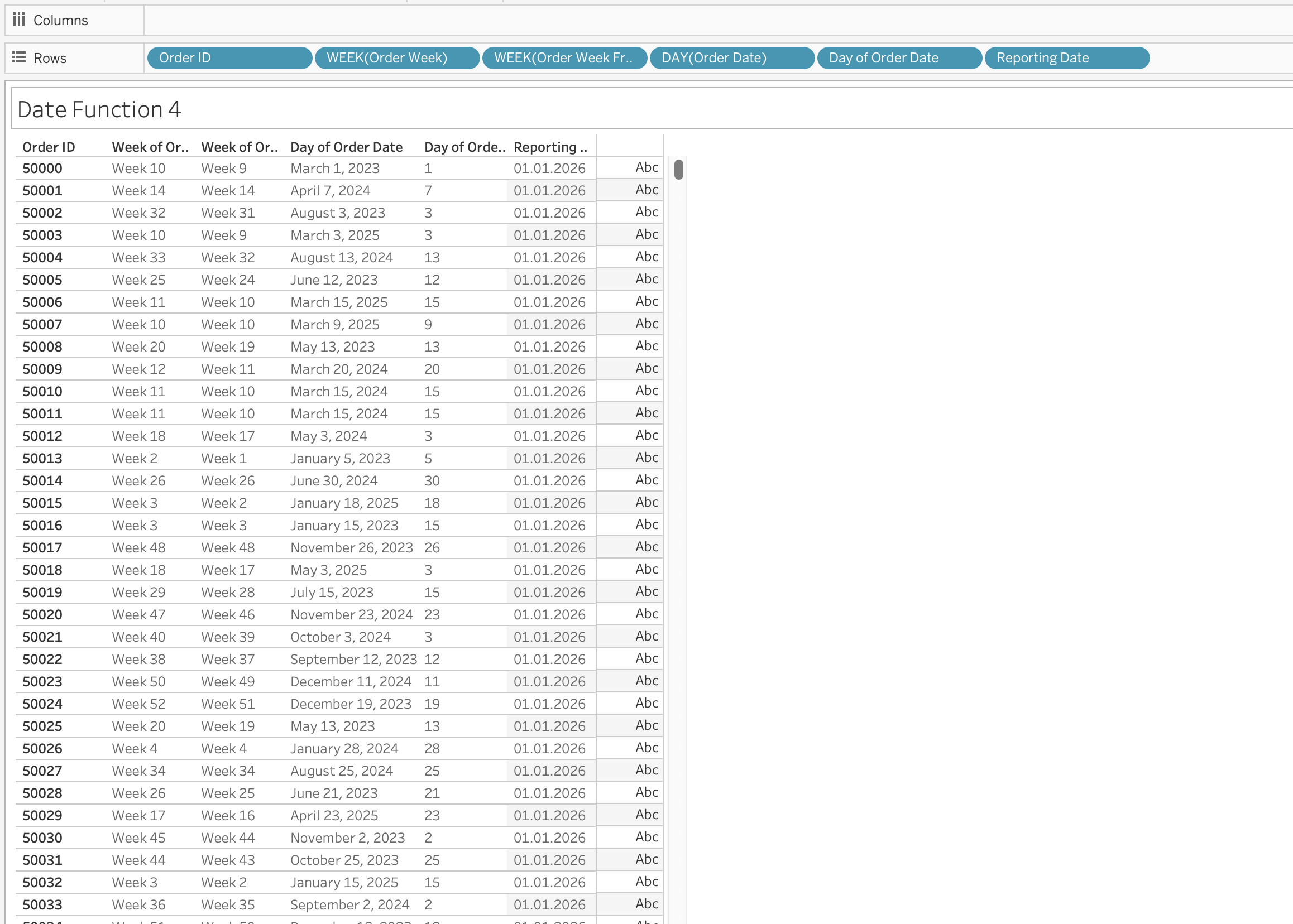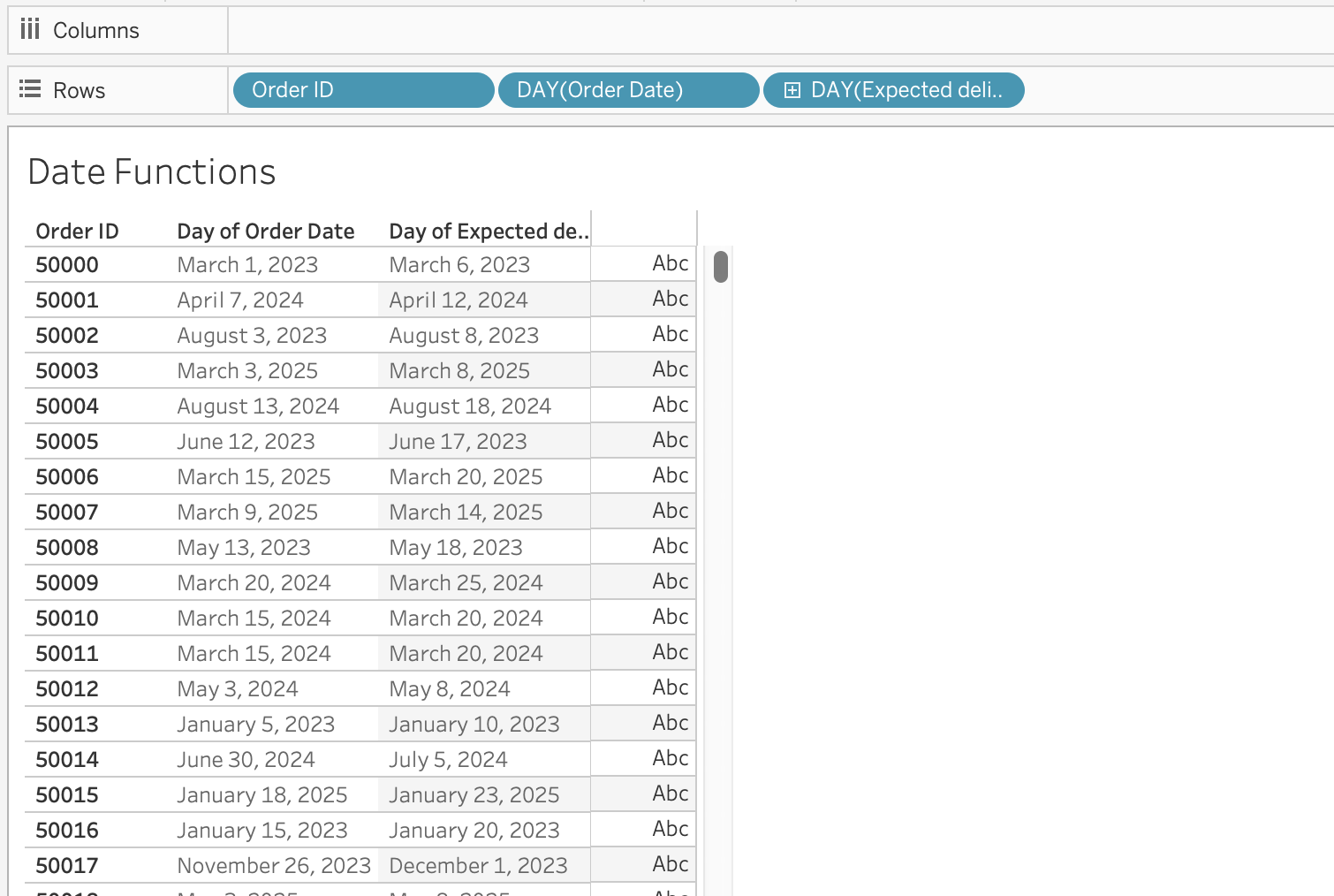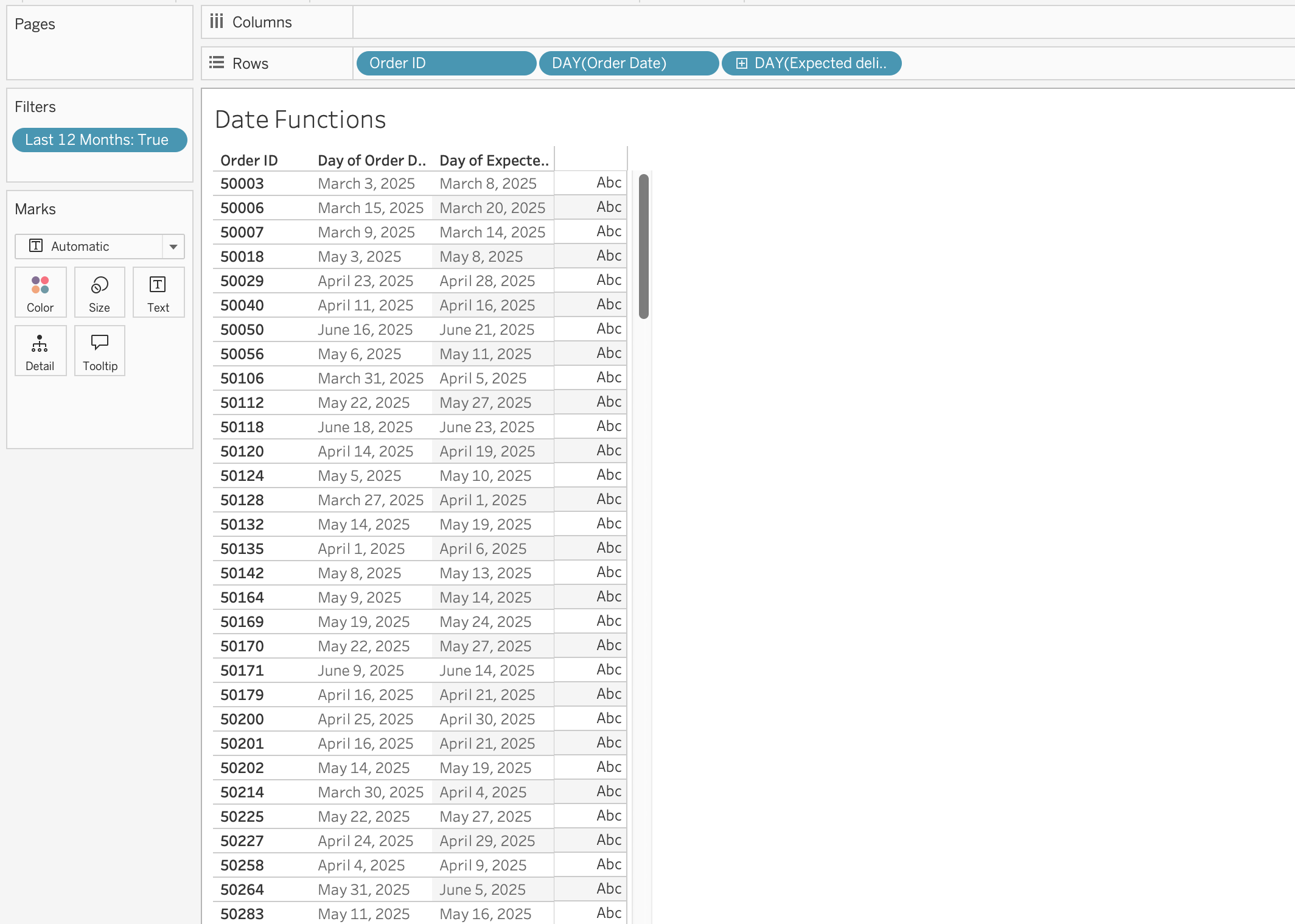 If a field contains recognizable dates, Tableau automatically assigns it a Date or Date & Time data type and enables special functionality.