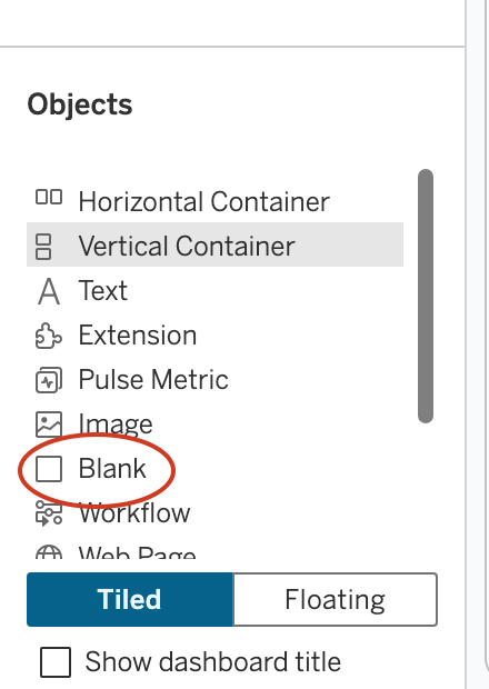 Drag a Vertical or Horizontal Container from the Dashboard pane onto the canvas.